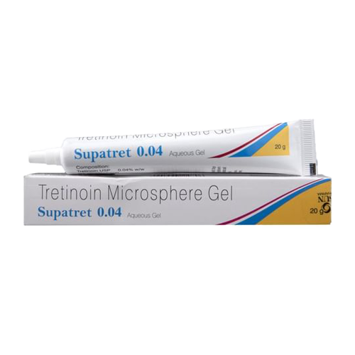 Supatret Gel Online Tretinoin Microsphere Gel is a kind of vitamin A, used to treat acne which appears as pimples or patches on the face, chest or backside.