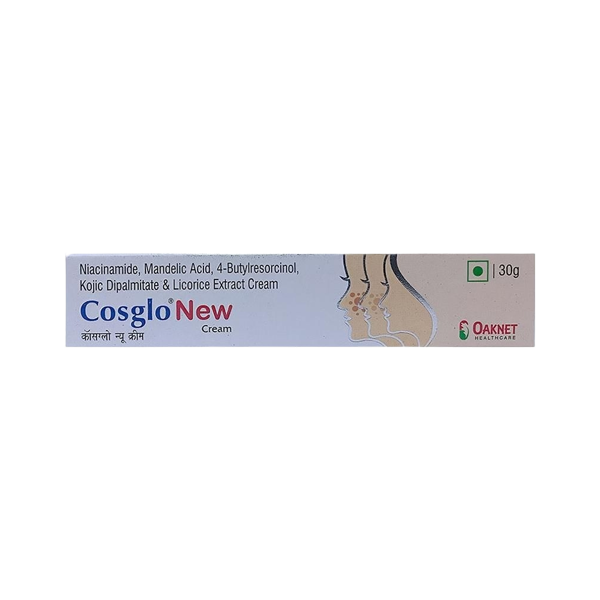 Cosglo New Cream works by healing wounds and increases the re-establishments of the normal skin. It helps in enhancing the skin deposition of hydrophilic skin-whitening agents, treating or preventing melasma.