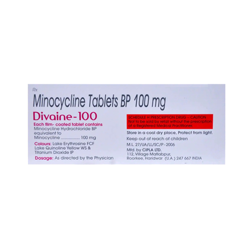 Divaine-Minocycline 100mg Tablets are a popular medication used to treat acne. The recommended dosage for Divaine is 100mg, taken once or twice daily, as directed by your doctor or a healthcare professional.
