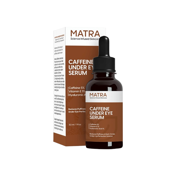 While caffeine is a standard part of our daily routine, it has more potential. Caffeine guards your soul’s windows with Matra Caffeine Under Eye Serum. Its antioxidant power is mesmerizing, a brave knight in the fight against melanin’s insidious buildup of dark circles. Caffeine conducts an intricate dance of better blood circulation, decreased puffiness, and a revitalizing stare.