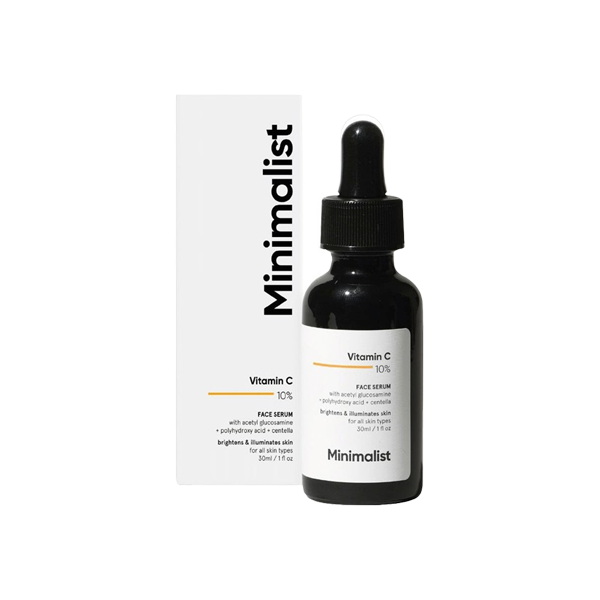 Minimalist Vitamin C 10% + AG 1% Face Serum is a glow-boosting daily serum packaged with the goodness of vitamin C that helps manage uneven skin tones, sun damage and dull skin with dark spots. Formulated with acetyl glucosamine, this serum provides skin moisturisation and boosts natural hyaluronic acid synthesis.