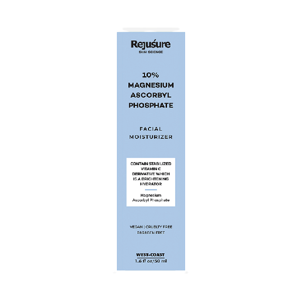 Rejusure’s Facial Moisturizer with 10% Magnesium Ascorbyl Phosphate is designed to combat signs of aging while enhancing skin tone. This hydrating cream is specially formulated with a lightweight and moisturizing blend of Magnesium Ascorbyl Phosphate, a water-soluble form of vitamin C that effectively brightens the skin without causing any harshness or irritation.