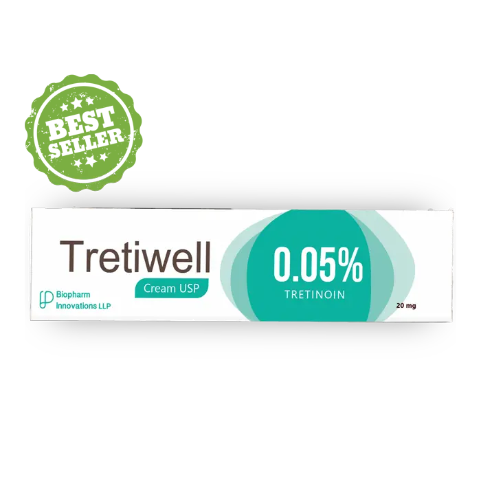 Tretiwell Cream 0.05% Cream reduces excessive oil production of the skin. Ideally, a pinpoint application at nighttime is recommended for the duration prescribed by your doctor. The amount you need and for how long you need to take it will depend on what you are being treated for. You should normally wash and dry the affected area before applying a thin layer of this medicine. Follow your doctor’s instructions. You should not apply it to damaged or broken skin and avoid contact with your mouth, eyes, and nose. It may take several weeks for your symptoms to improve but keep using it regularly to get the most benefit. Consult your doctor again if you do not notice any improvement after a few weeks. Using more medicine or applying it more often than prescribed will not make it work any faster and may increase the side effects.